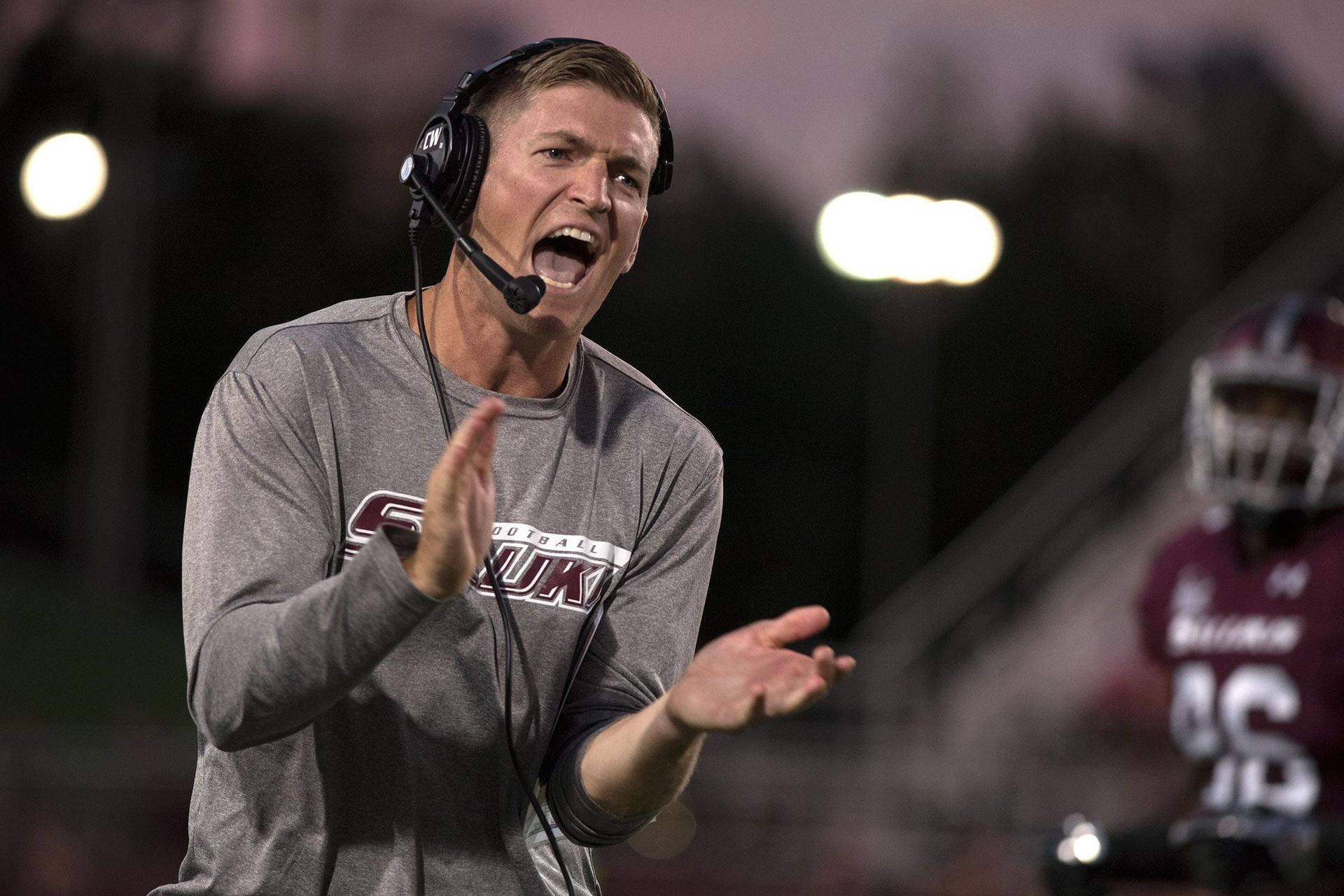 Nick Hill, SIU Head Football Coach, and Nathaniel Marlow, Webber High School Senior, IHSA 2nd leading basketball scorer of all-time.
